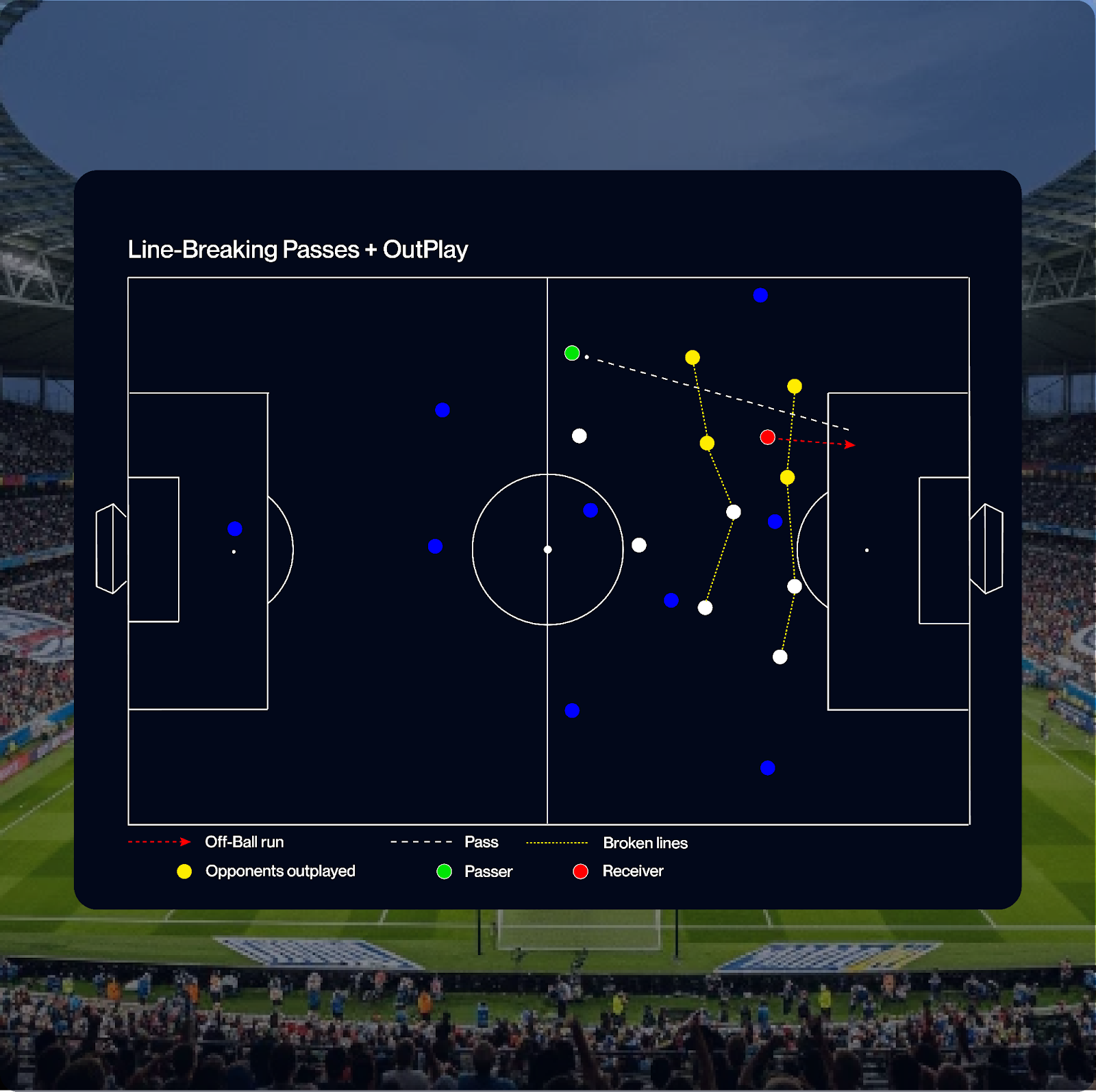 Line-Breaking allow us to measure how players and teams disrupt opposition structures by identifying which lines are broken and which opponents are eliminated from the play. Over time, these actions power broader metrics such as our Outplay models, helping quantify a team’s ability to generate advantage through progression.