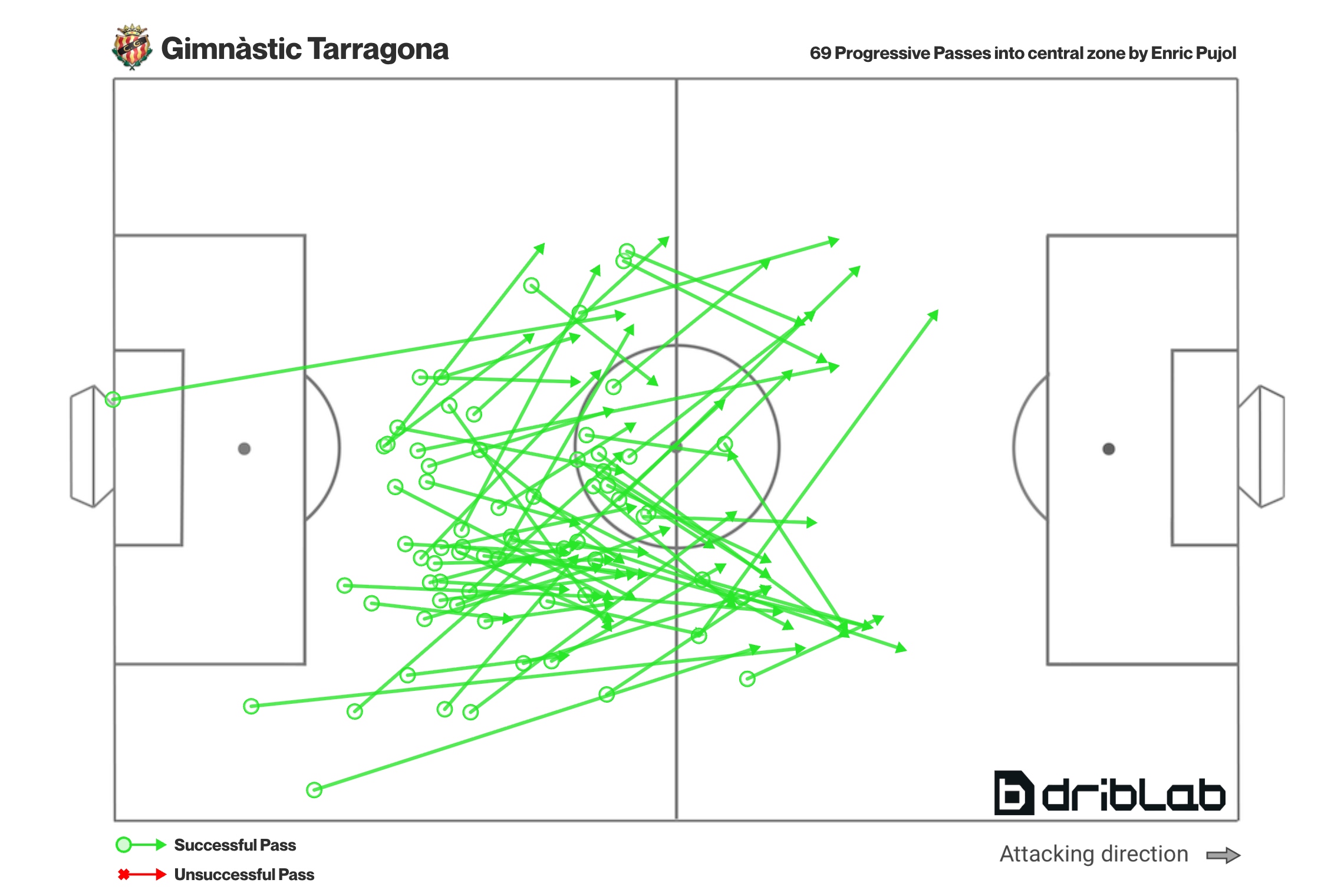 What's more interesting is that 40% of his ball progressions have been passess into the central channel, which is the most congested area of the pitch.