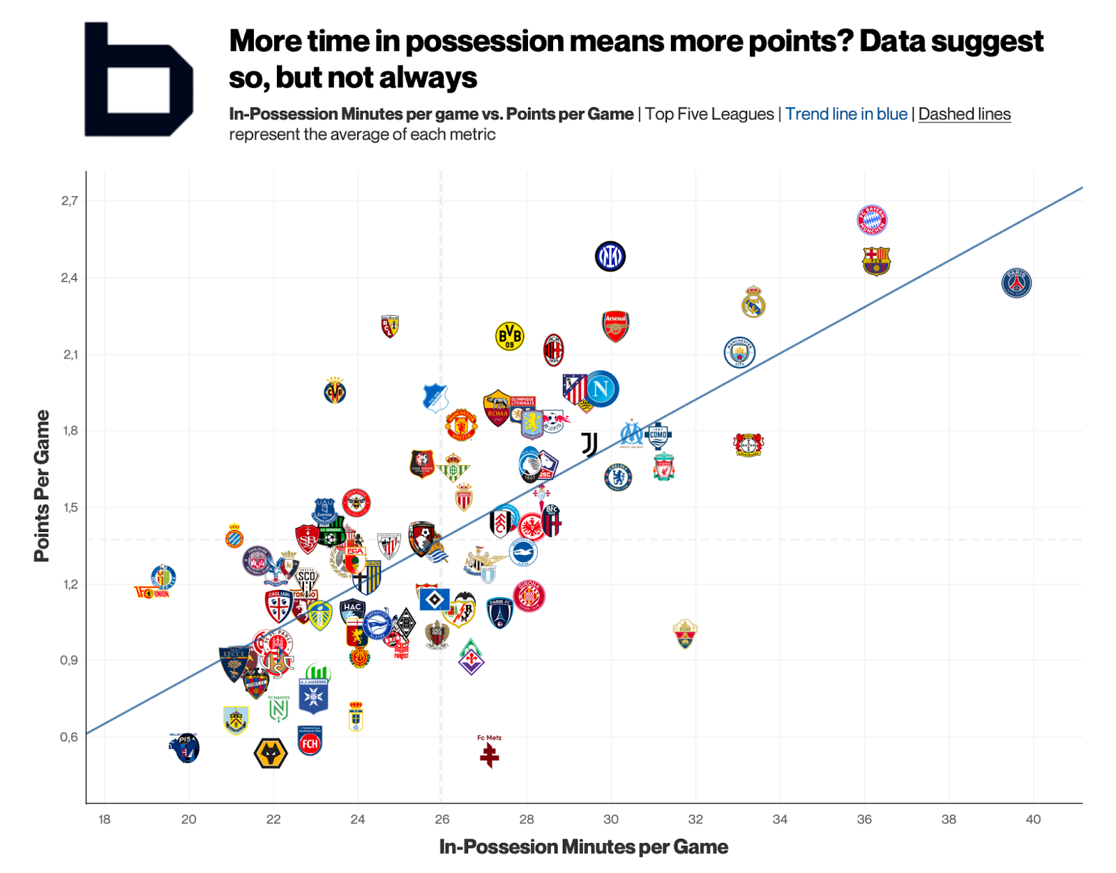 To start, a question as simple as it is revealing: which teams have the ball the most?