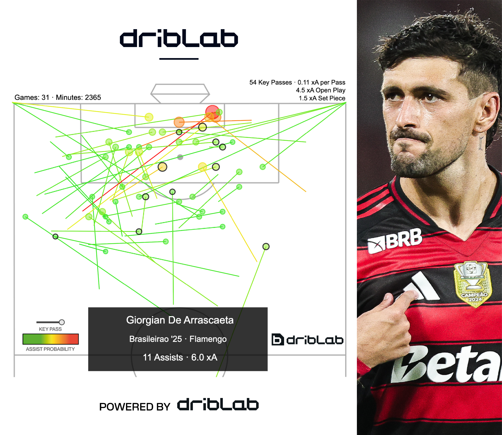 At 31, Giorgian De Arrascaeta is a club legend. Twice Brazilian champion, twice continental champion, with a long list of collective honours. He is having the best statistical season of his career: 17 league goals and 11 assists, plus two more in the Libertadores.