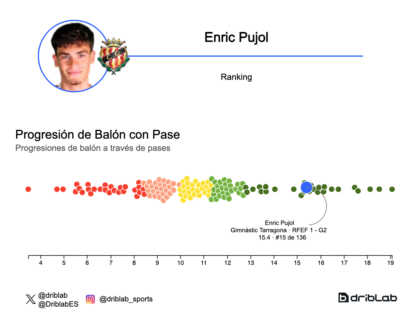 Pujol está todavía empezando su curva de crecimiento y aprendizaje y, a pesar de ello, ya muestra un rendimiento general competente para la categoría. Un futbolista muy a tener en cuenta.